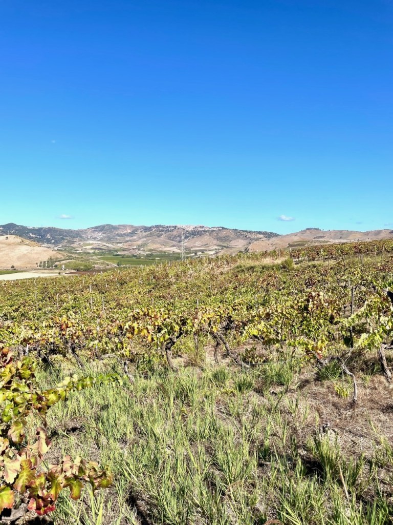 Ci è venuta voglia di salsedine e quindi scendiamo nella piana, dove vigneti e mare si fondono.