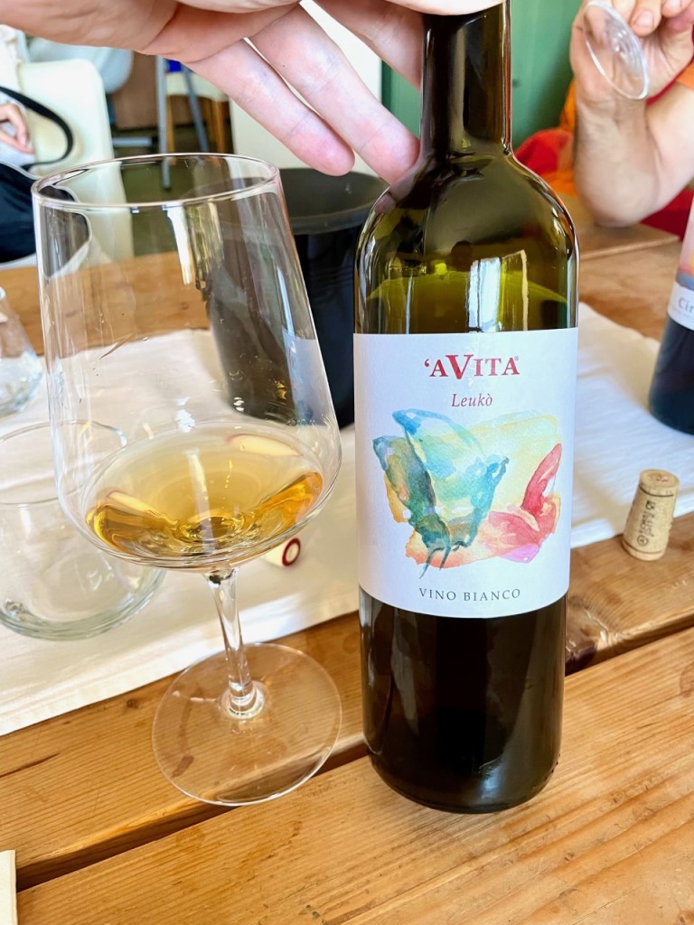 Questo fa da preludio ad una degustazione spontanea che si apre con il suo bianco “Leuko”, un blend di greco bianco e gaglioppo vinificato in bianco a dare struttura, qua basta dare un sorso per sentire tutto il calore del sud.
