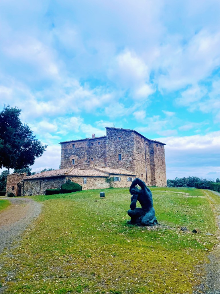 Finalmente approdiamo a Castello Romitorio, non appena scendiamo dalla macchina veniamo catturati dall’energia che sprigiona il posto e allo stesso tempo siamo spinti dal vento che soffia sbarazzino tra le installazioni che circondano la tenuta.